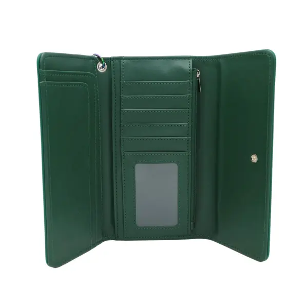 -Contiene: Bolsillo interno con cierre, cinco compartimientos organizadores y seis para tarjetas.