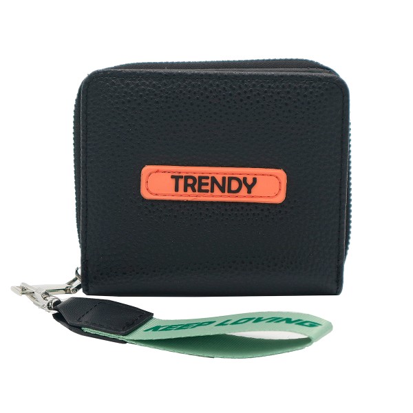 Billetera Trendy 21329 Color: Black, Aqua y Fucsia. Medidas: 11cm de alto x 11,5cm de ancho x 2cm de profundidad. Material: 100% Cuero PU