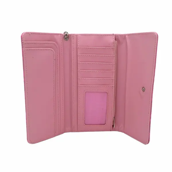 ‘-Color: Gris, Negro y Rosa. -Material: Poliéster. -Medidas: Alto 10 cm x Ancho 19.5 cm x Profundidad 2.5 cm. -Contiene múltiples compartimentos. -Incluye llavero desmontable. -Incluye Packaging de la marca.