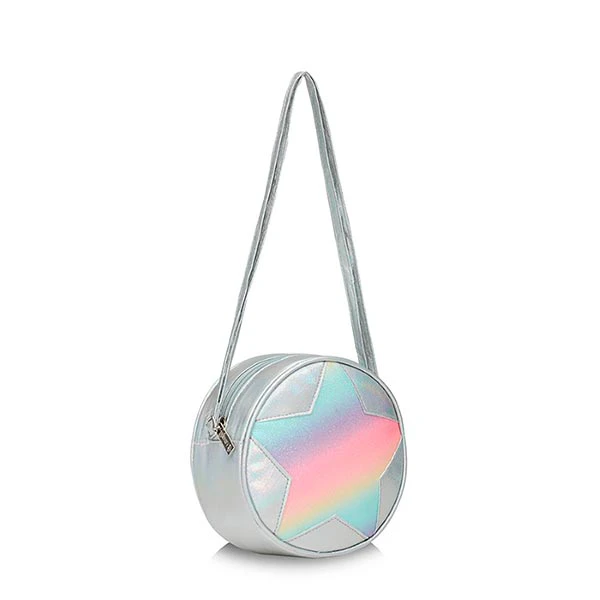 Cartera Infantil Trendy 17409 Color; Plateado y rosa. Medidas: 18cm de alto x 18cm de ancho x 7cm de profundidad. Material: 100% PVC