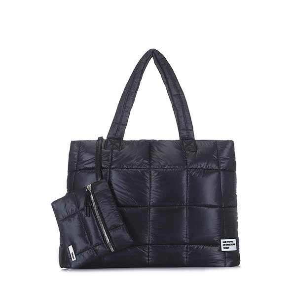 Cartera Trendy 16181. Colores: Negro y blanco. Material: 100% poliéster. Medidas: 34 cm de alto x 44 cm de ancho x 15 cm de profundidad.