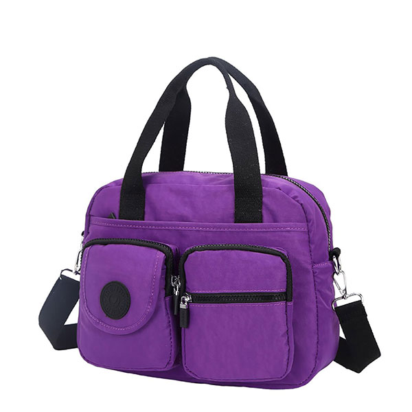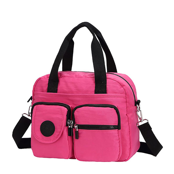 Cartera Trendy 21997. Colores: Negro, violeta y fucsia. Material: 100% poliéster. Medidas: 23 cm de alto x 30 cm de ancho x 11 cm de profundidad.