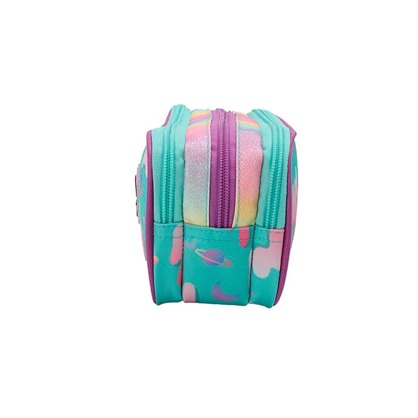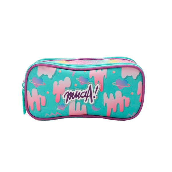 Cartuchera Muaa 28061 Color: Rosa y Aqua. Medidas: 10 cm de alto x 22 cm de ancho x 4 cm de profundidad. Material: 100% Poliéster.
