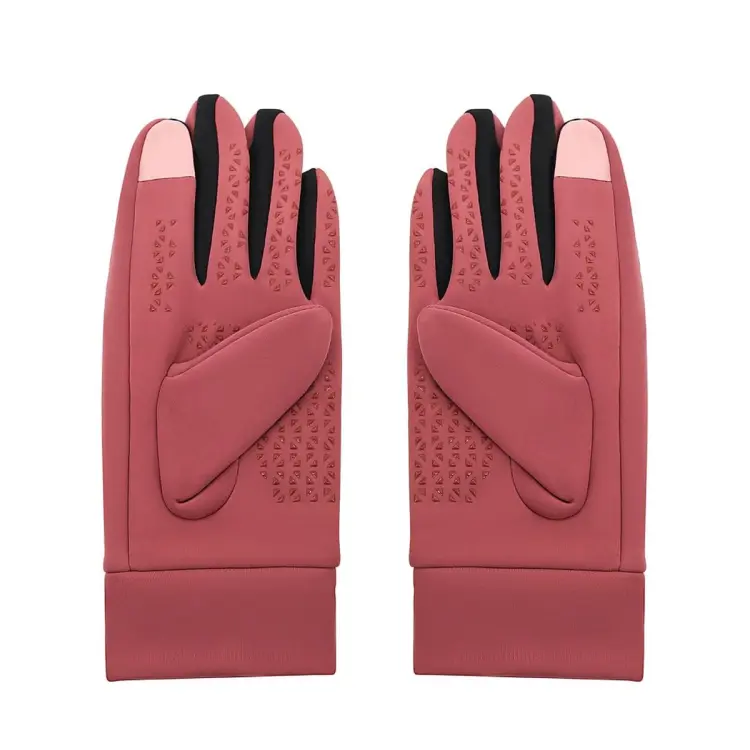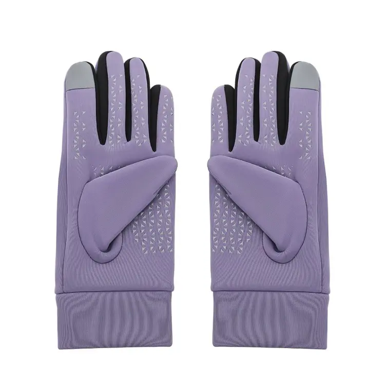 ‘-Color: Lila, Negro y Rojo. -Material: Poliéster. -Medidas: 23 cm x 9 cm. -Interior térmico acolchonado, aptos para pantalla táctil, palmas antideslizantes.