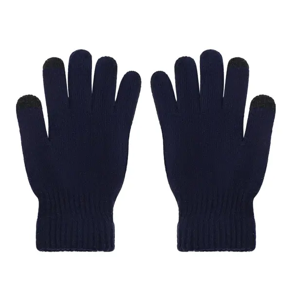 ‘-Color: Azul Marino, Gris y Negro. -Material: Acrílico. -Medidas: 23 cm x 12 cm. -Puño elástico, aptos para pantalla táctil.