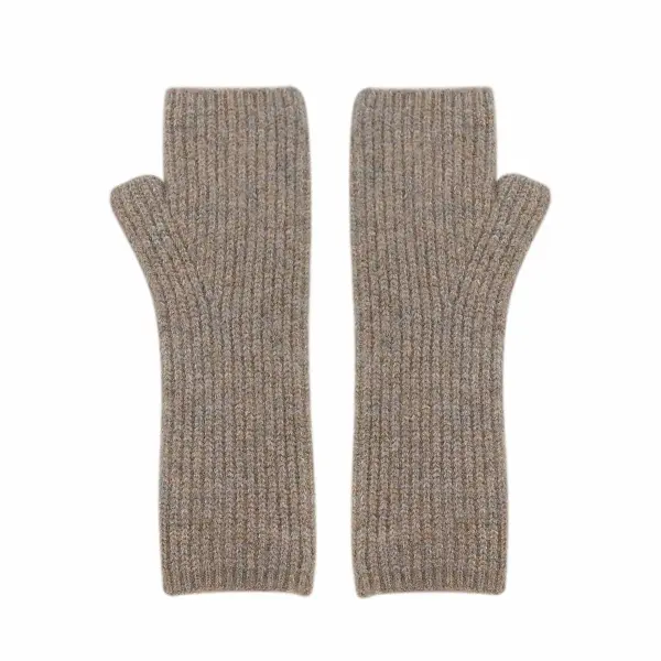 ‘-Guantes diseño mitones para mujer. -Color: Beige, Chocolate y Gris. -Material: 45% Poliéster Reciclado, 32% acrílico, 7% lana merino 13% antipilling, 3% spandex -Medidas: 28 cm x 8 cm.