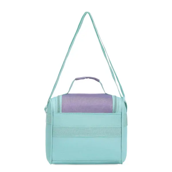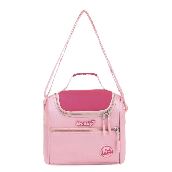 -Contiene: Bolsillo principal con aislante interior, bolsillo frontal, asa de transporte superior, sujeción para carro, tira regulable.