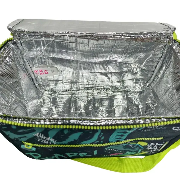 -Contiene: Bolsillo principal con interior térmico, bolsillo frontal incluye dije, asa de transporte superior, tira regulable y sujeción para carrito.