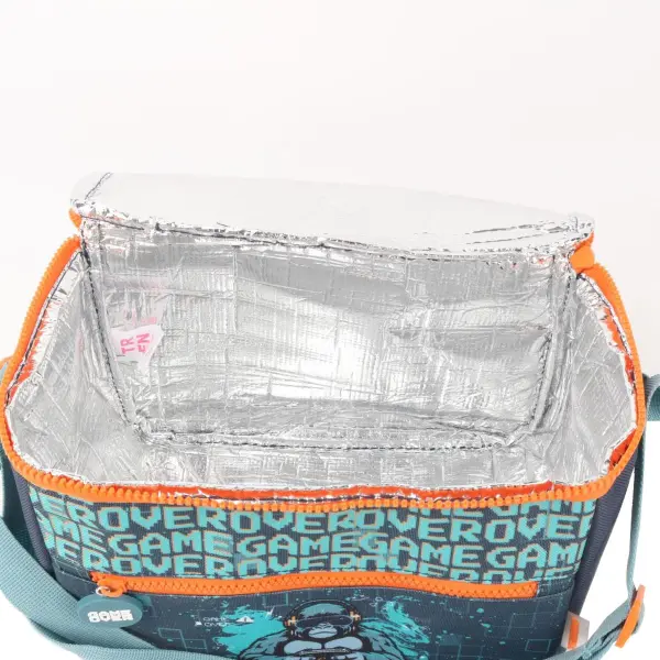 -Contiene: Bolsillo principal con interior térmico, bolsillo frontal incluye dije, asa de transporte superior, tira regulable y sujeción para carrito.