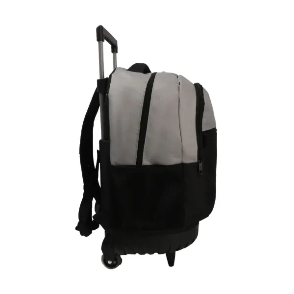 -Contiene: Bolsillo principal, bolsillos frontales, bolsillos laterales portabotellas, asa de transporte superior, tiras regulables con tela mesh, carro y ruedas reforzadas.