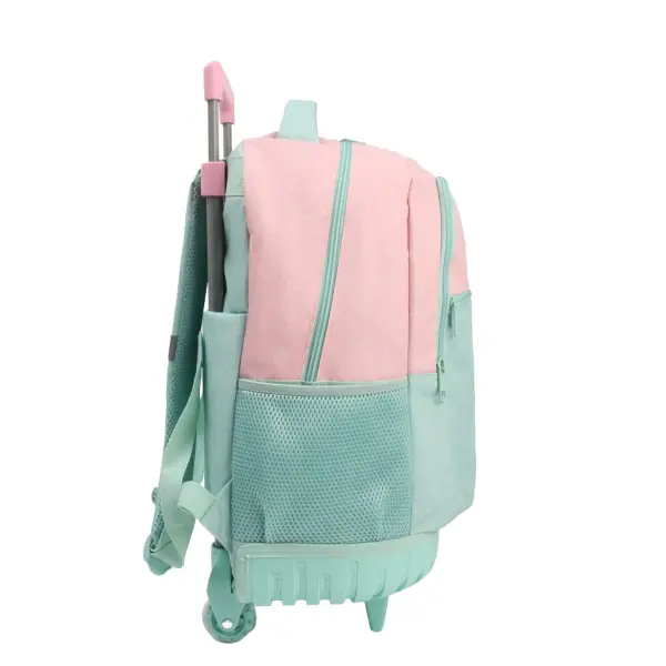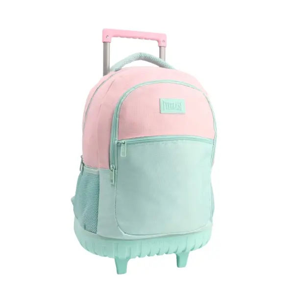 -Contiene: Bolsillo principal, bolsillos frontales, bolsillos laterales portabotellas, asa de transporte superior, tiras regulables con tela mesh, carro y ruedas reforzadas.