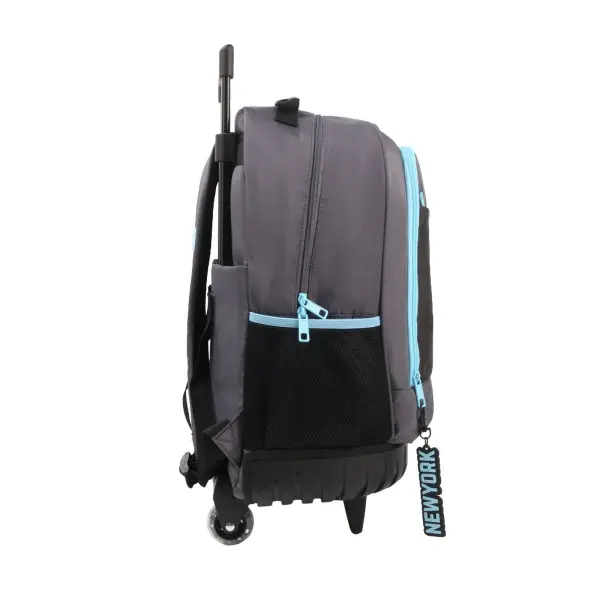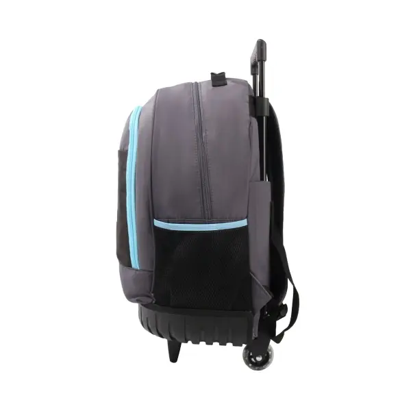 -Contiene: Bolsillo principal, bolsillos frontales, bolsillos laterales portabotellas, asa de transporte superior, tiras regulables con tela mesh, carro y ruedas reforzadas.