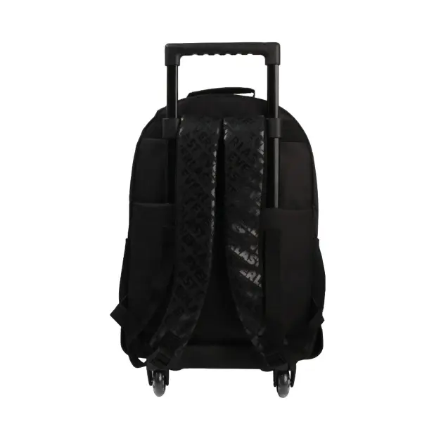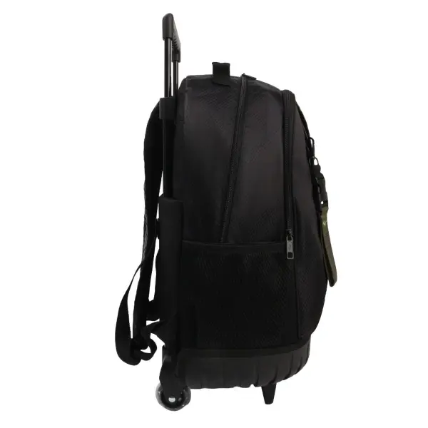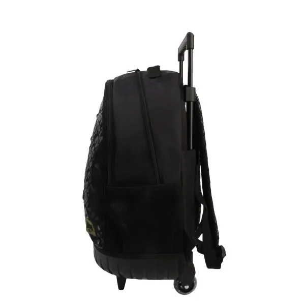 -Contiene: Doble compartimento, bolsillo frontal, bolsillos laterales portabotellas, asa de transporte superior, tiras regulables con tela mesh, carro y ruedas reforzadas.