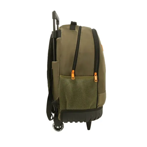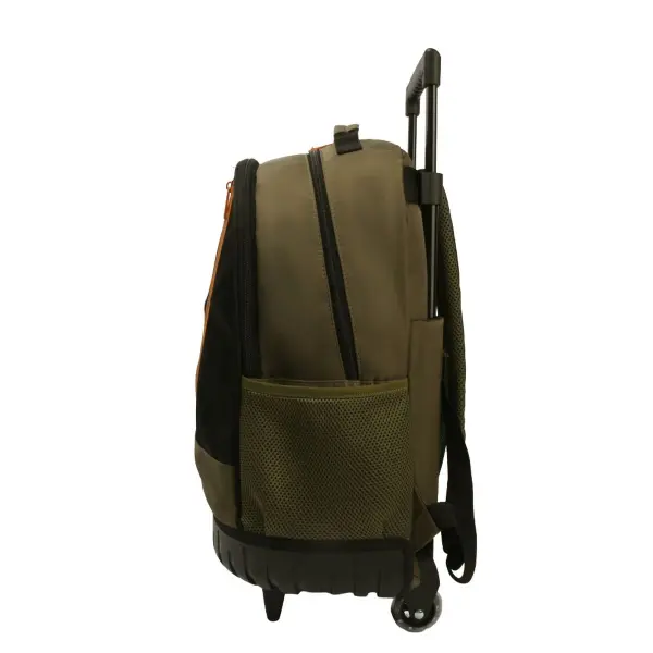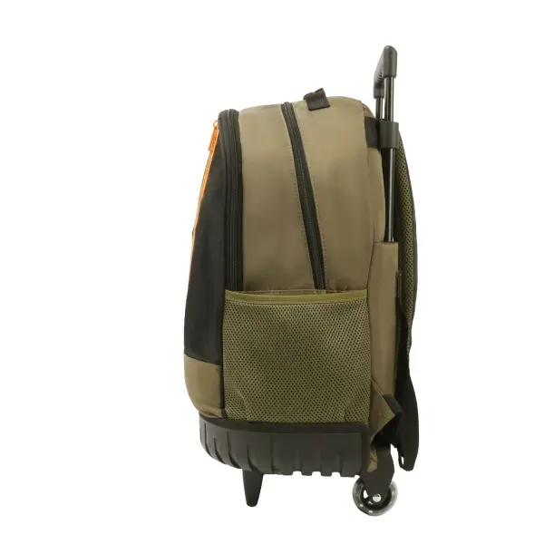 -Contiene: Doble compartimento, bolsillo frontal, bolsillos laterales portabotellas, asa de transporte superior, tiras regulables con tela mesh, carro y ruedas reforzadas.