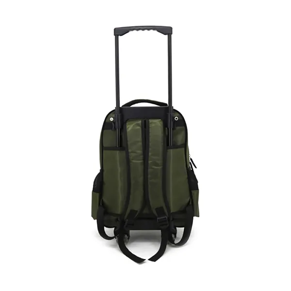 -Contiene: Bolsillo principal, bolsillos frontales, bolsillos laterales portabotellas, asa de transporte superior, tiras regulables con tela mesh, carro y ruedas dobles reforzadas.