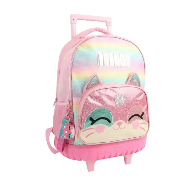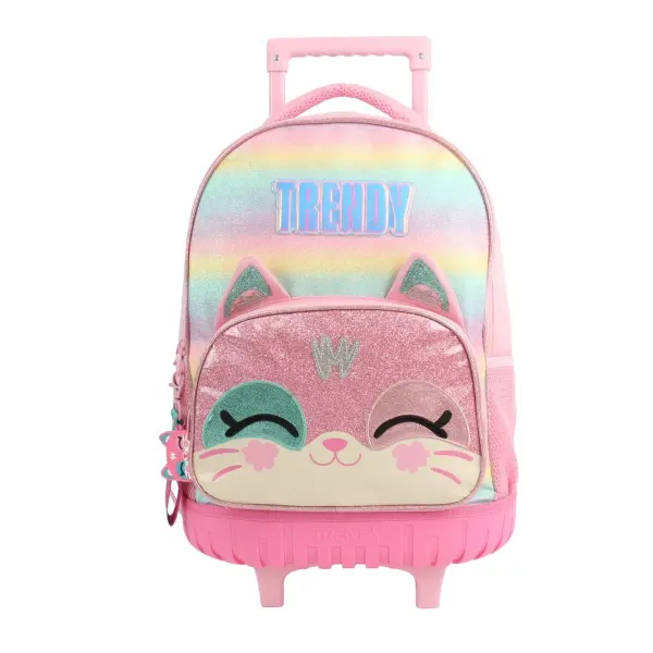 -Contiene: Doble compartimento, bolsillo frontal, bolsillos laterales portabotellas, asa de transporte superior, tiras regulables con tela mesh, carro y ruedas reforzadas.