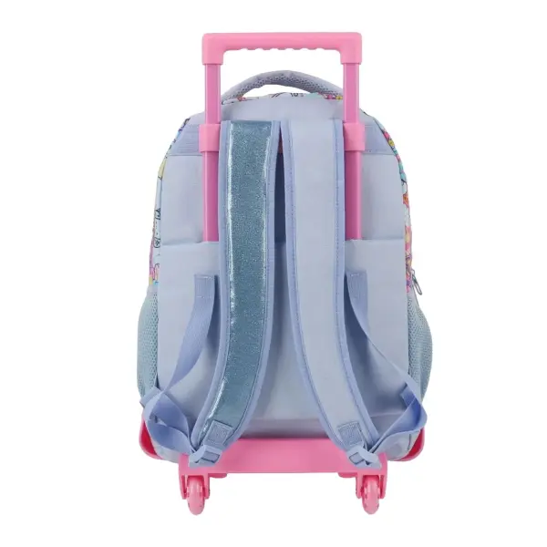 -Contiene: Doble compartimento, bolsillo frontal, bolsillos laterales portabotellas, asa de transporte superior, tiras regulables con tela mesh, carro y ruedas reforzadas.