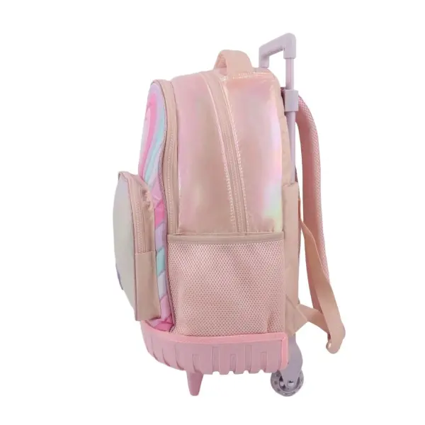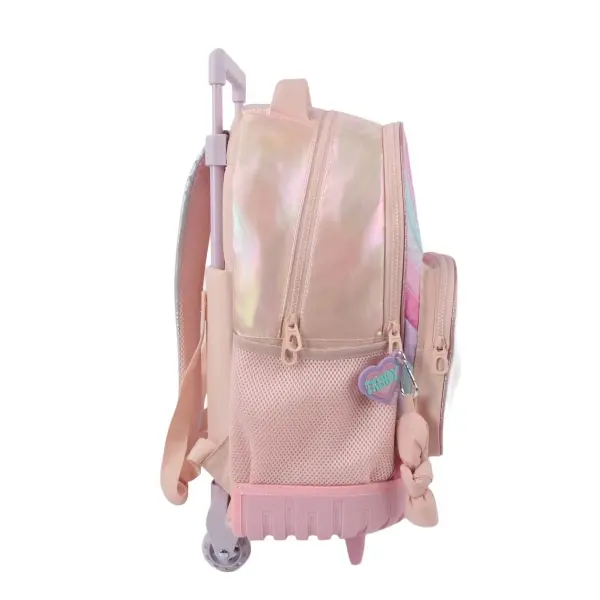 -Contiene: Doble compartimento, bolsillo frontal, bolsillos laterales portabotellas, asa de transporte superior, tiras regulables con tela mesh, carro y ruedas reforzadas.