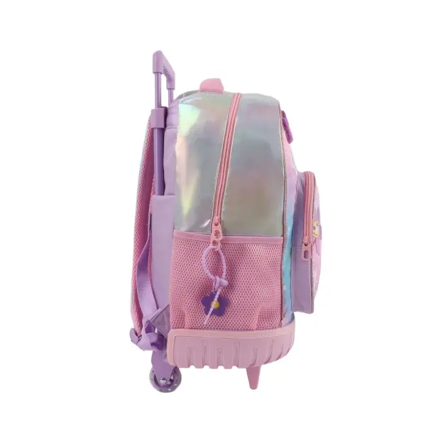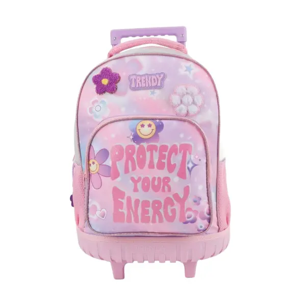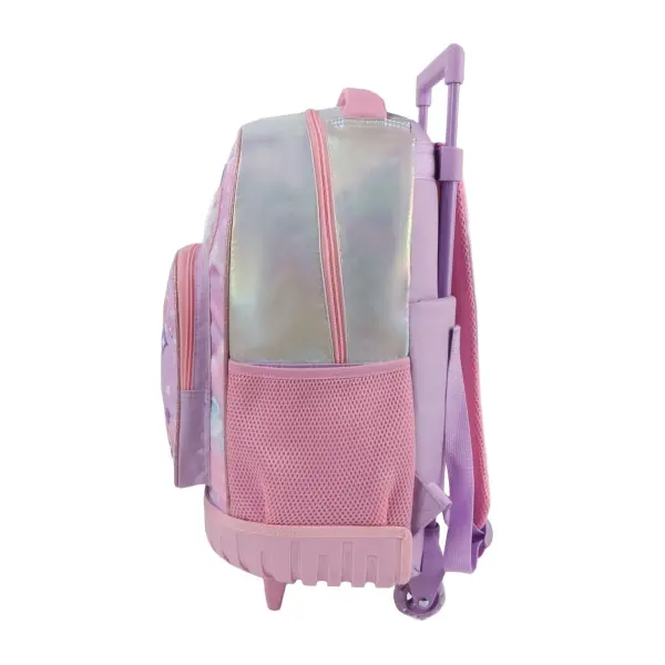 -Contiene: Bolsillo principal, bolsillo frontal, bolsillos laterales portabotellas, asa de transporte superior, tiras regulables con tela mesh, carro y ruedas reforzadas.