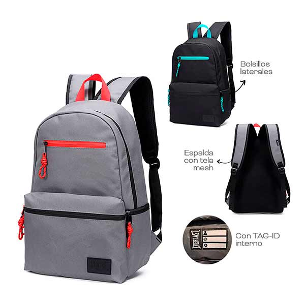 Mochila Everlast 21891. Colores: Kaky y gris. Material: 100% nylon. Medidas: 44 cm de alto x 30 cm de ancho x 14 cm de profundidad.