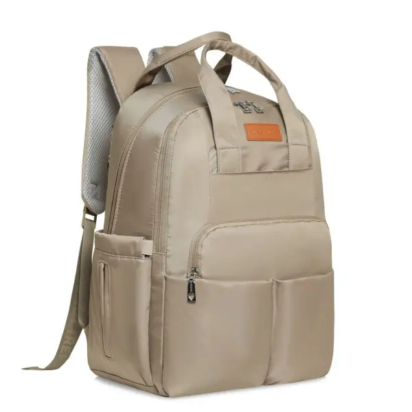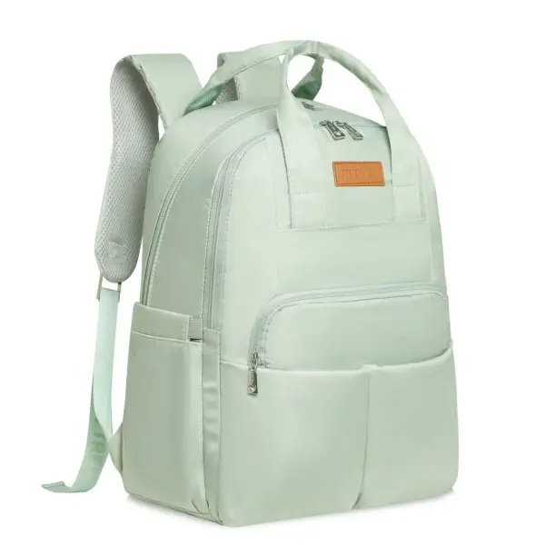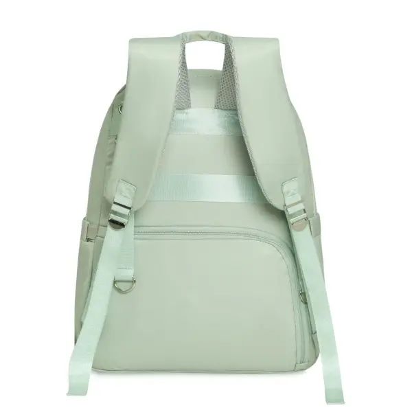 ‘-Color: Kaky, Menta y Negro. -Material: 100% Poliéster. -Medidas: Alto 42 cm x Ancho 30 cm x Profundidad 17 cm. -Contiene: Bolsillo principal con doble compartimento con organizadores internos, bolsillo posterior fácil acceso, bolsillos frontales térmicos, bolsillos laterales, sujeción para valija, tiras regulables con tela mesh, dos asas de transporte superior, tira desmontable.