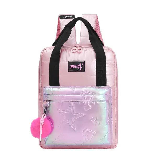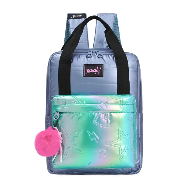 -Contiene: Bolsillo principal con organizador interno, bolsillo frontal, asas de transporte superior, tiras regulables con tela mesh.