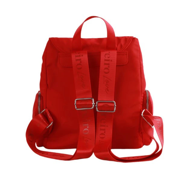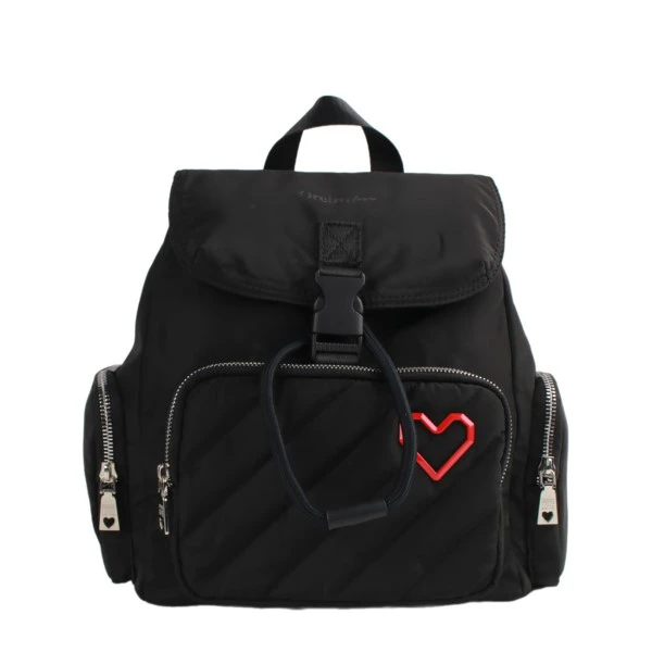 Mochila Oreiro Love 27860 Color: Negro y Rojo. Medidas 25cm de alto x 23cm de ancho x 8cm de profundidad. Material:100% Poliester.
