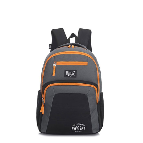Mochila Everlast 16329. Colores: Negro con rojo, gris con naranja y azul. Material: 100% poliéster. Medidas: 44 cm de alto x 30 cm de ancho x 13 cm de profundidad.