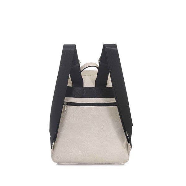 Mochila Trendy 16481. Colores: Negro, suela y bone. Material: 100% cuero PU. Medidas: 32 cm de alto x 26 cm de ancho x 9 cm de profundidad.