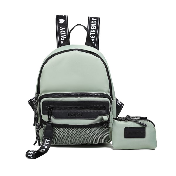 Mochila Trendy 27927 Color: Mint, Black y Pink. Medidas: 29cm de alto x 23cm de ancho x 11cm de profundidad. Material:100% Nylon.