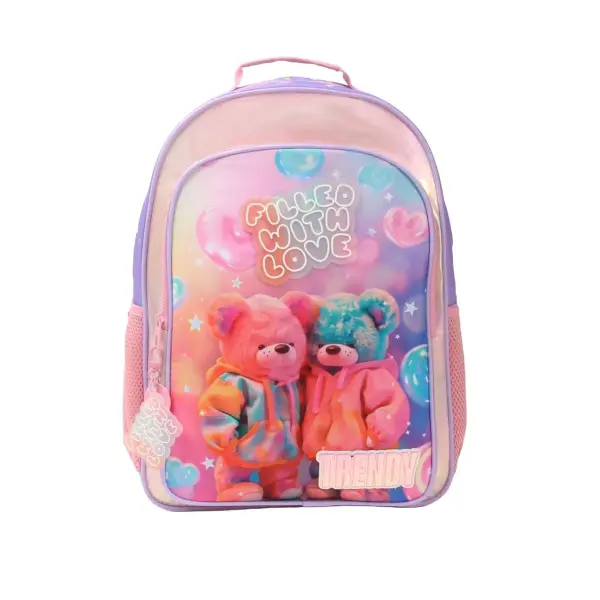 -Contiene: Bolsillo principal, bolsillo frontal, bolsillos laterales portabotellas, asa de transporte superior, tiras regulables con tela mesh.