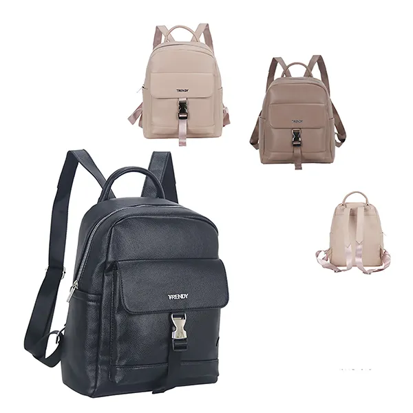 -Contiene: Dos bolsillos principales con un bolsillo interno organizador y un bolsillo interno con cierre, un bolsillo frontal, un asa de transporte superior, tiras regulables, un porta llavero externo.