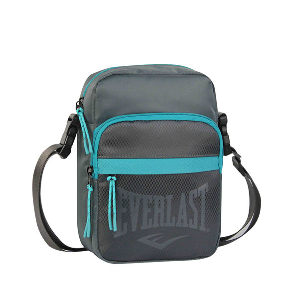 Morral Everlast 27291. Colores: Negro y gris. Material: 100% poliéster. Medidas: 23 cm de alto x 16 cm de ancho x 7 cm de profundidad.
