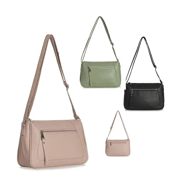 -Contiene: Dos bolsillos frontales, un bolsillo principal, tira regulable.