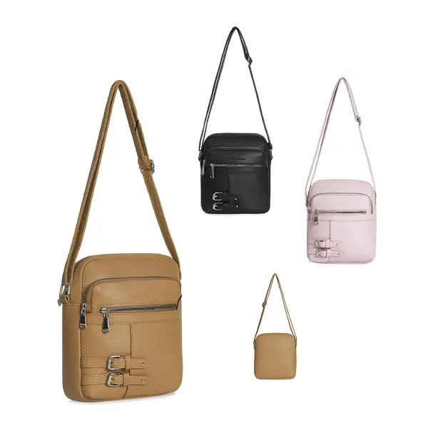 -Contiene: Dos bolsillos frontales, un bolsillo principal, un bolsillo posterior antirrobo, tira regulable.