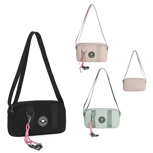 -Contiene: Un bolsillo principal con un bolsillo interno organizador, dos bolsillo frontales, tira desmontable y regulable de hasta 127cm.