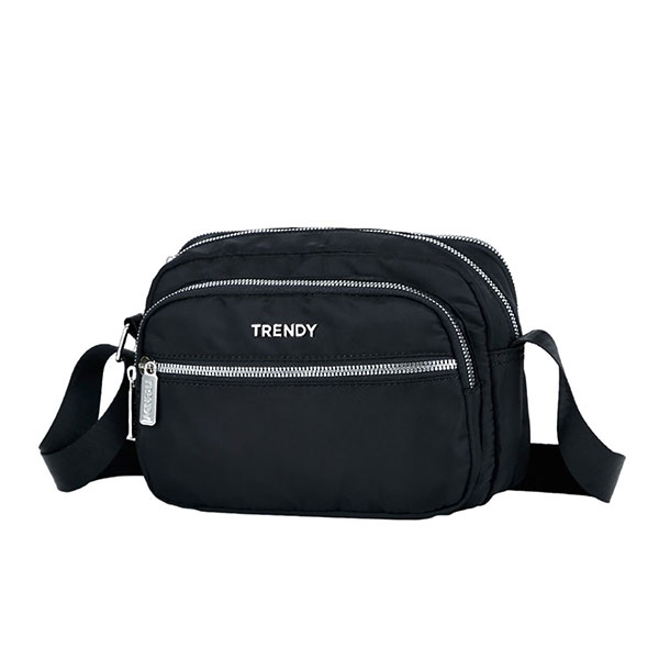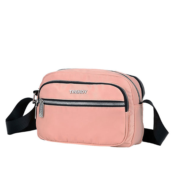 Morral Trendy 22002. Colores: Negro, rosa, suela y beige. Material: 100% Poliester. Dimensiones: Alto 16 cm X Ancho 22 cm X Profundidad 8 cm.