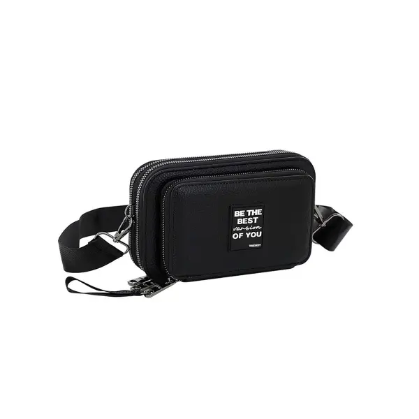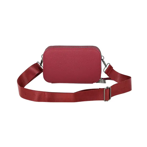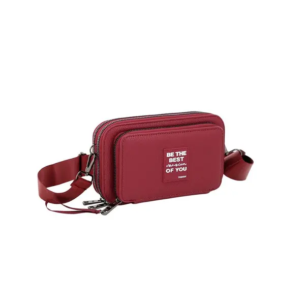 ‘-Color: Bordo, Kaky y Negro. -Material: 100% PU. -Medidas: Alto 12 cm x Ancho 20 cm x Profundidad 7.5 cm. -Contiene bolsillo principal con doble compartimento, bolsillo frontal, tira regulable desmontable reforzada. -Interior forrado con el logo de la marca.