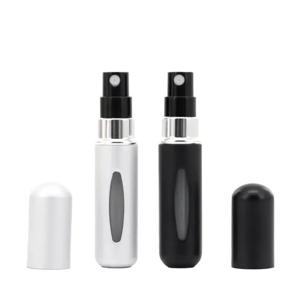 Perfumero Trendy 17810 Color: Negro con Plateado y Rosa con Fucsia. Contiene 2 unidades. Medidas: 8 cm de alto x 1,5 cm de diametro cada uno. Material: 70% Plástico + 30% Silicone.