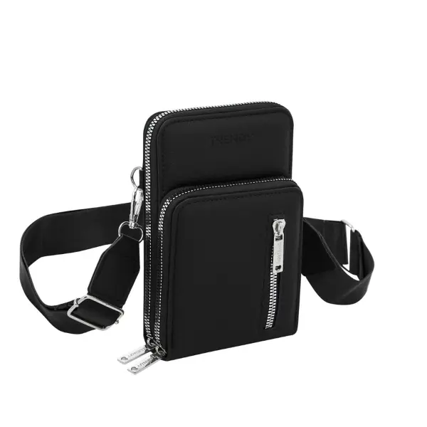 -Contiene: Dos bolsillos frontales, un bolsillo principal con dos bolsillo organizadores y tres compartimientos para tarjetas, una tira de transporte desmontable y ajustable hasta 130cm.