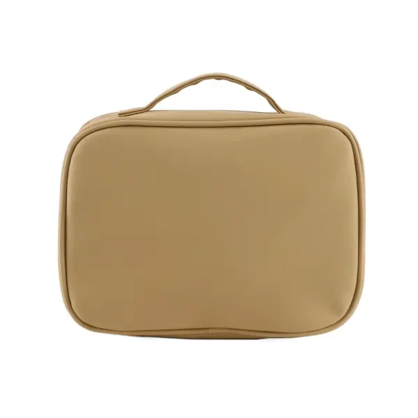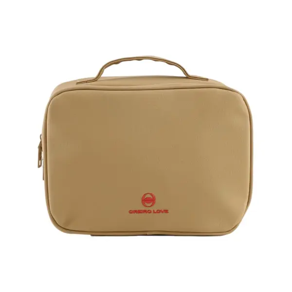 ‘-Color: Kaky y Negro. -Material: PVC. -Medidas: Alto 17 cm x Ancho 24 cm x Profundidad 10 cm. -Contiene: Bolsillo principal con múltiples organizadores internos, asa de transporte, compartimento desmontable. -Interior forrado con el logo de la marca.