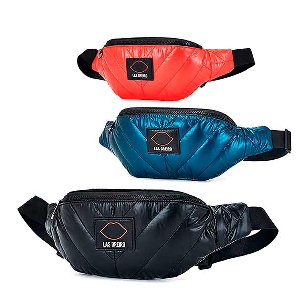 Riñonera Las Oreiro 21694. Colores: Negro, fucsia y celeste. Material: 100% nylon. Posee un compartimiento con cierre, en su interior tiene dos bolsillos, unos ismple y otro con cierre y una correa con gancho. También tiene el interior forado en tela, un llavero decorativo y correa ajustable. Medidas: 13 cm de alto x 33 cm de ancho x 5 cm de profundidad.