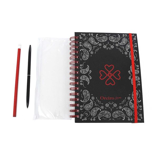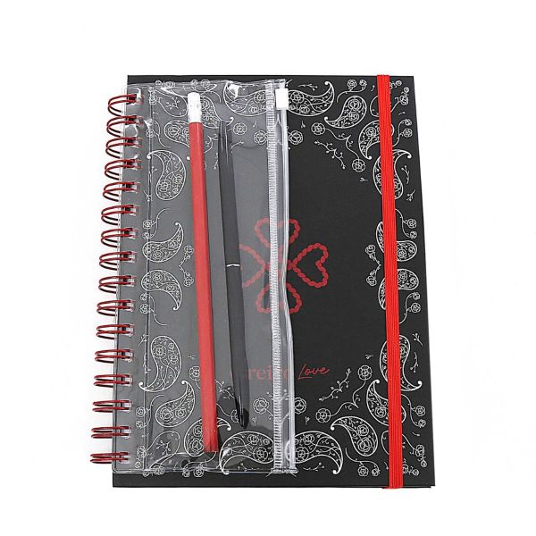 Set contiene: Cuaderno, Sobre transparente, una lapicera y un lápiz.